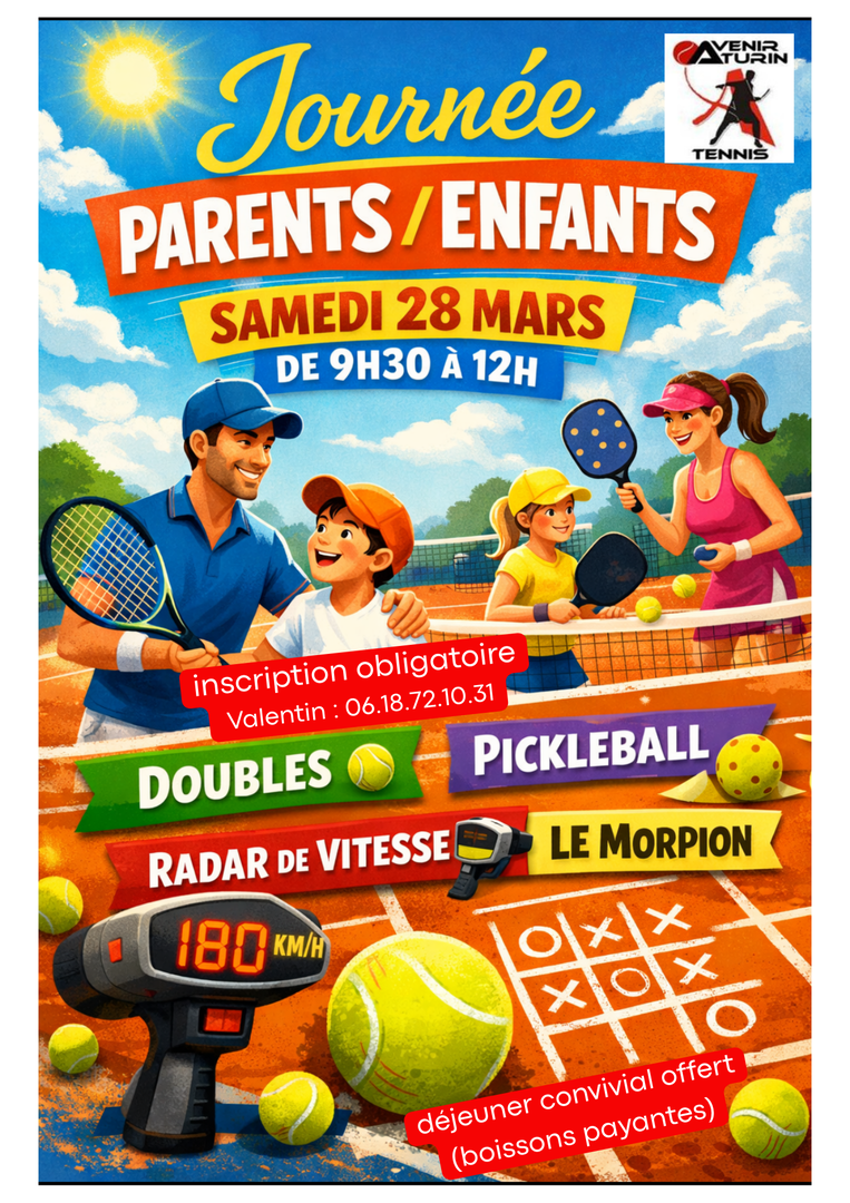 A cette occasion, nous proposons aussi à vos enfants de venir avec un copain, une copine, qui ne pratique pas le tennis. L'objectif est de partager leur expérience de ce sport et pourquoi pas faire naître de nouvelles vocations.