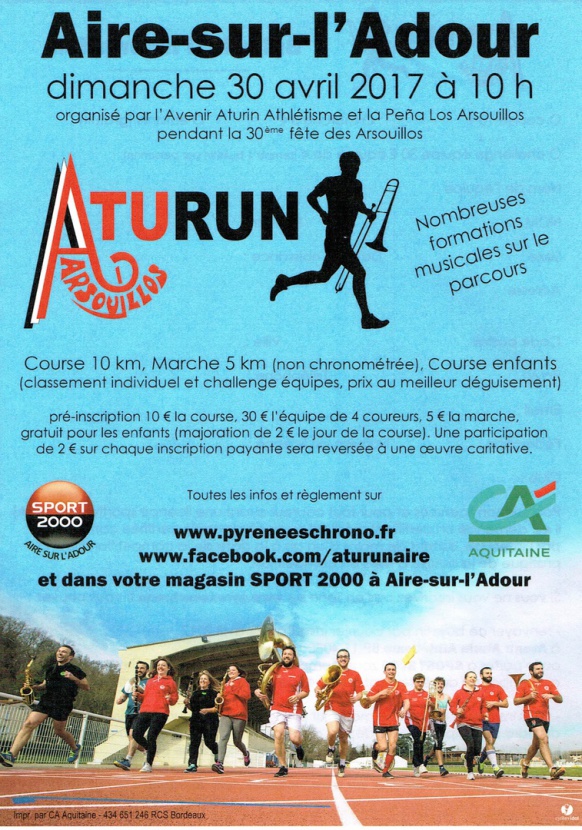 Chers adhérents, VENEZ PARTICIPER A L'ATURUN Les ARSOUILLOS et l'Avenir Aturin Athlétisme vous attendent Si tous ceux qui n'ont pas de rencontre ce week-end là peuvent participer .. Bientôt plus d'info par mail